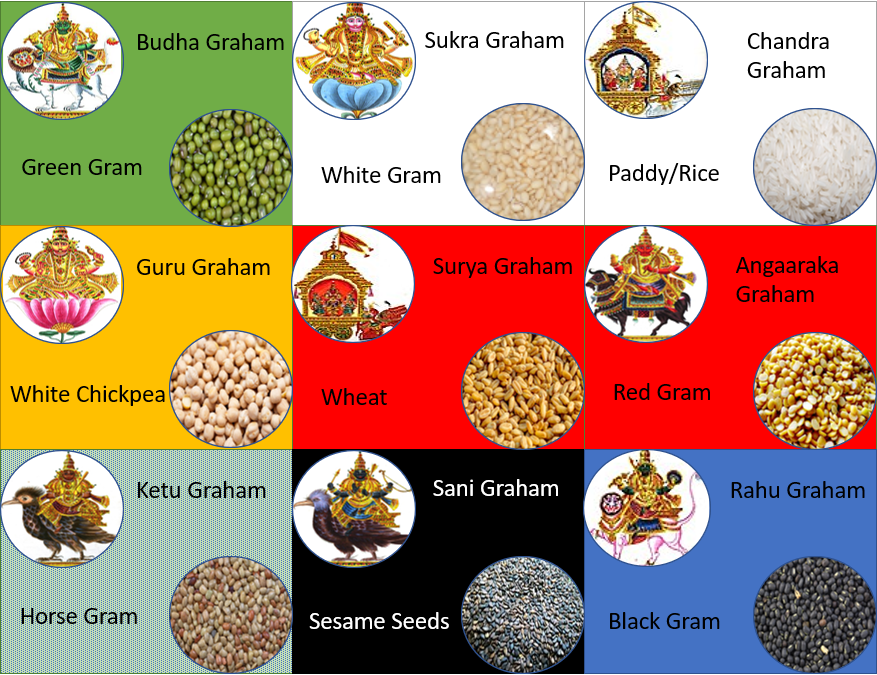 Navadhanya ( 9 Grains ) 1/4 lb of each explained in each of the following languages